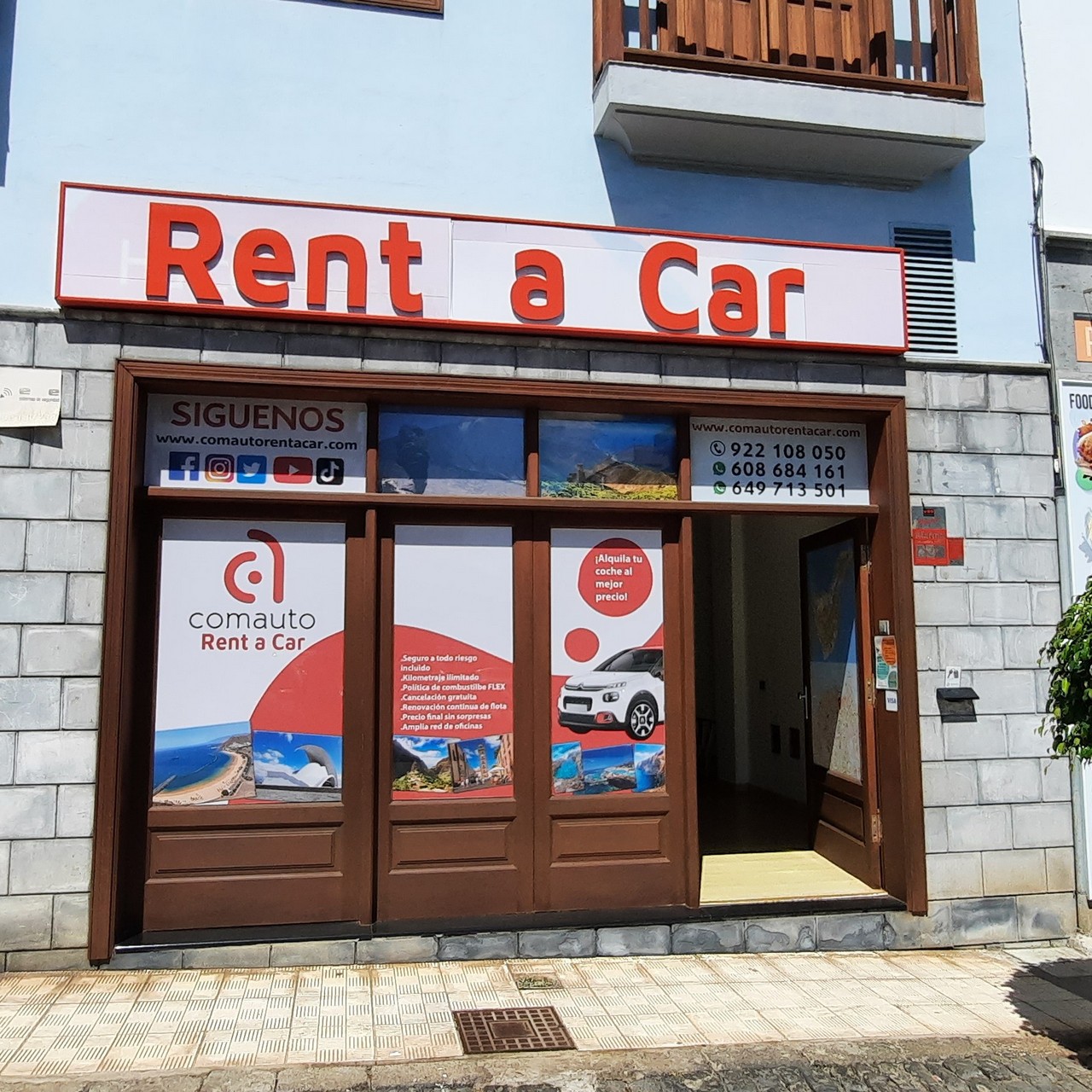 Comauto Rent a Car lleva más de 15 años a su servicio, ofreciéndole las mejores condiciones de alquiler incluyendo el pago en destino, seguro a todo riesgo (incluido), cancelación gratuita, etc. Todo ello con una amplia y moderna gama de vehículos que se adaptarán a sus necesidades. Aunque están en multitud de puntos en la isla no dude en consultar cualquier itinerario de recogida y entrega. Más información en sus oficinas.