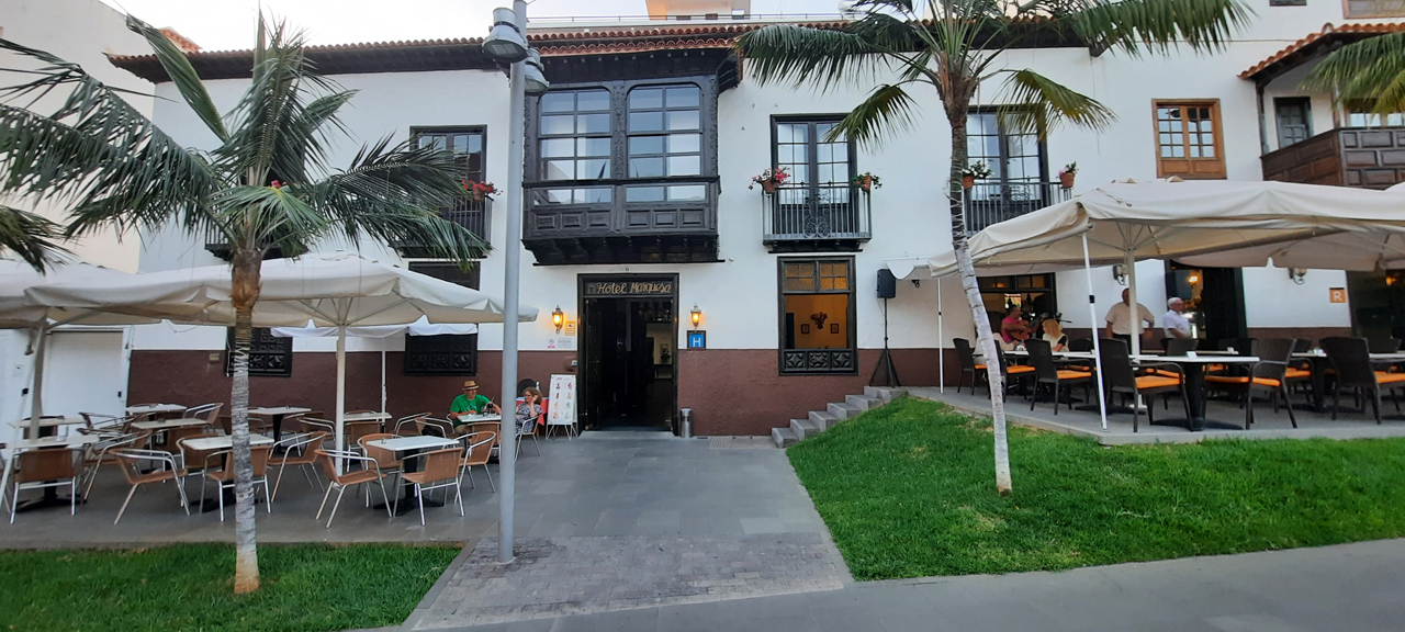 El Hotel Marquesa es un emblemático establecimiento de Puerto de la Cruz que presta sus servicios como hotel desde principios del siglo XIX. Situado en el área peatonal de la Calle Quintana, sus habitaciones han sido renovadas recientemente para hacer su estancia más agradable. Se ofrecen múltiples comodidades: TV satélite, wi-fi, solárium, AC, etc. En nuestro estupendo restaurante ‘La Terraza’ ofrecemos exquisitos platos elaborados con la mayor atención culinaria. Nuestra parrilla deleita a portuenses y foráneos en un ambiente acogedor y seguro.