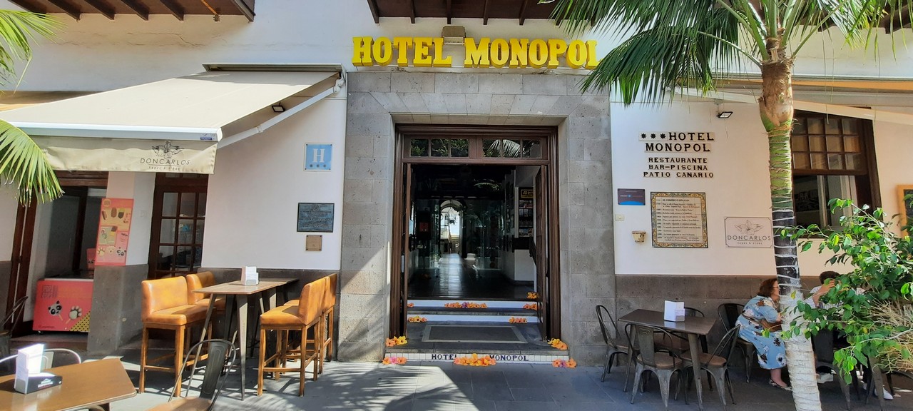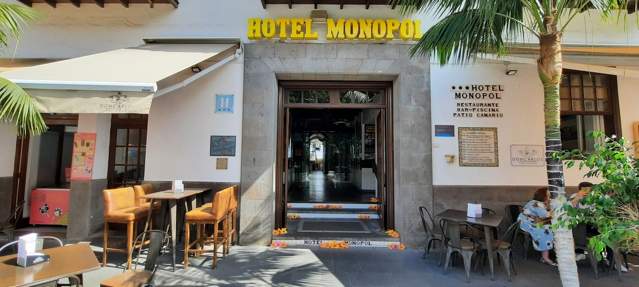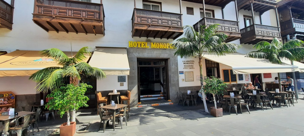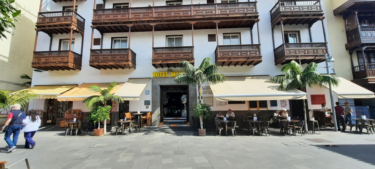 Alrededor de su patio canario, donde crecen palmeras y plantas, se eleva una triple baranda tallada en madera noble, repleta de enredaderas tropicales que trepan por centenarios pilares de tea, ofreciendo al visitante un remanso de paz.