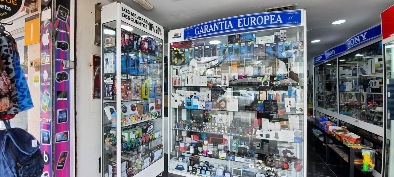 Local dedicado a la venta de productos electrónicos como móviles, cámaras de fotos, pulseras y relojes inteligentes, despertadores, pequeños electrodomésticos para el pelo… incluso puedes encontrar gafas de sol para tus vacaciones y algunos imanes de recuerdo.