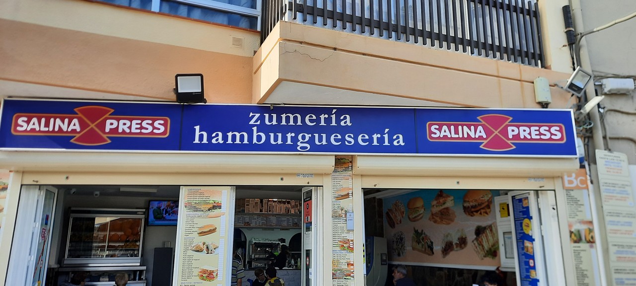 Hamburguesería y zumería Salina Xpress. Disfruta de nuestras hamburguesas, sándwiches, bocadillos, ensaladas, zumos y menús. ¡Ven a disfrutar con tus amigos y familiares!